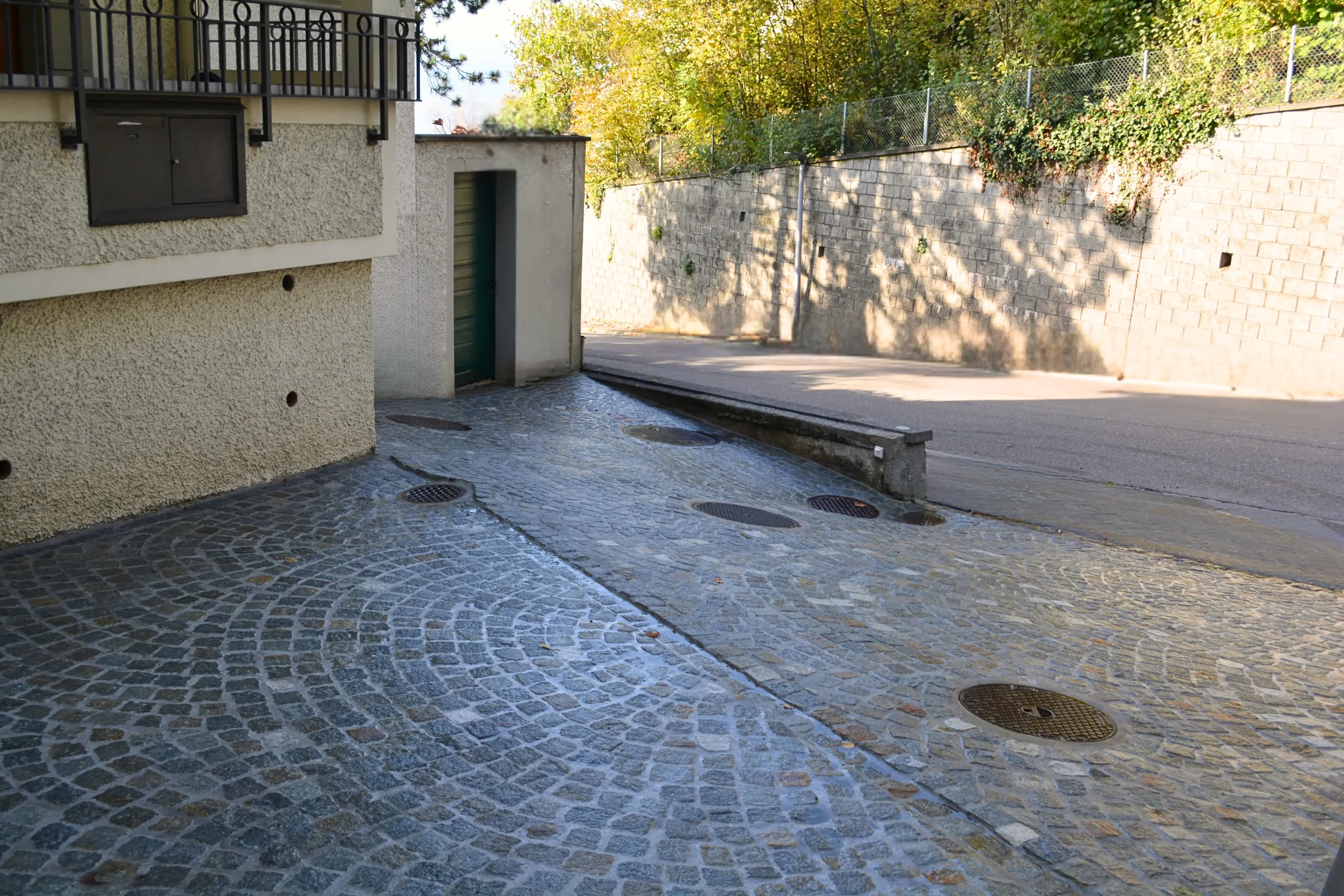 In Meilen entstand 2024 eine Einfahrt, die durch klare Gestaltung und hochwertige Ausführung überzeugt. Im Zentrum steht eine Bogenpflästerung, die mit ihrer geschwungenen Linienführung nicht nur optisch begeistert, sondern auch durch ihre Langlebigkeit und Stabilität überzeugt – ein klassisches Verlegemuster, das Beständigkeit und Ästhetik auf ideale Weise vereint.