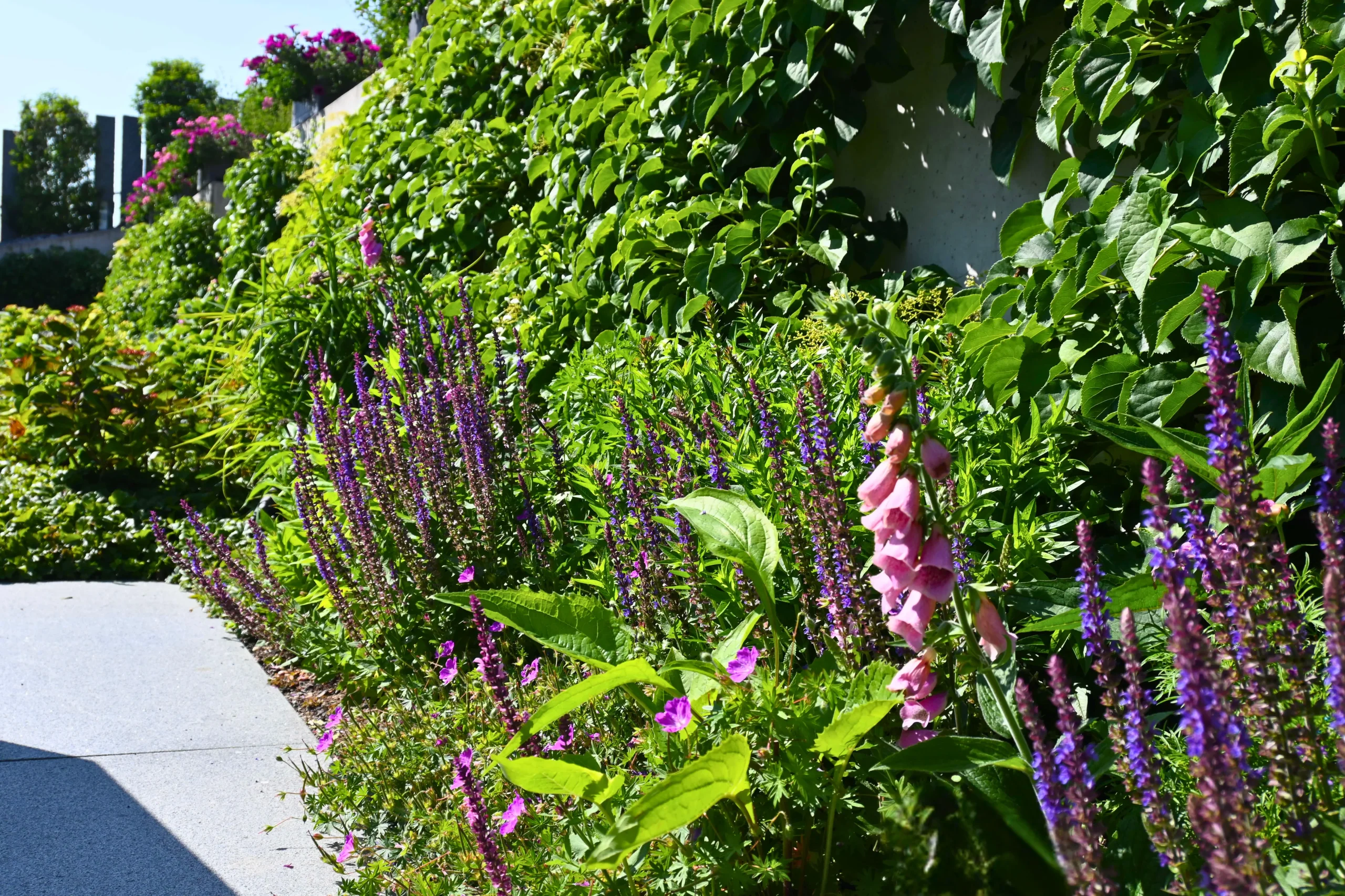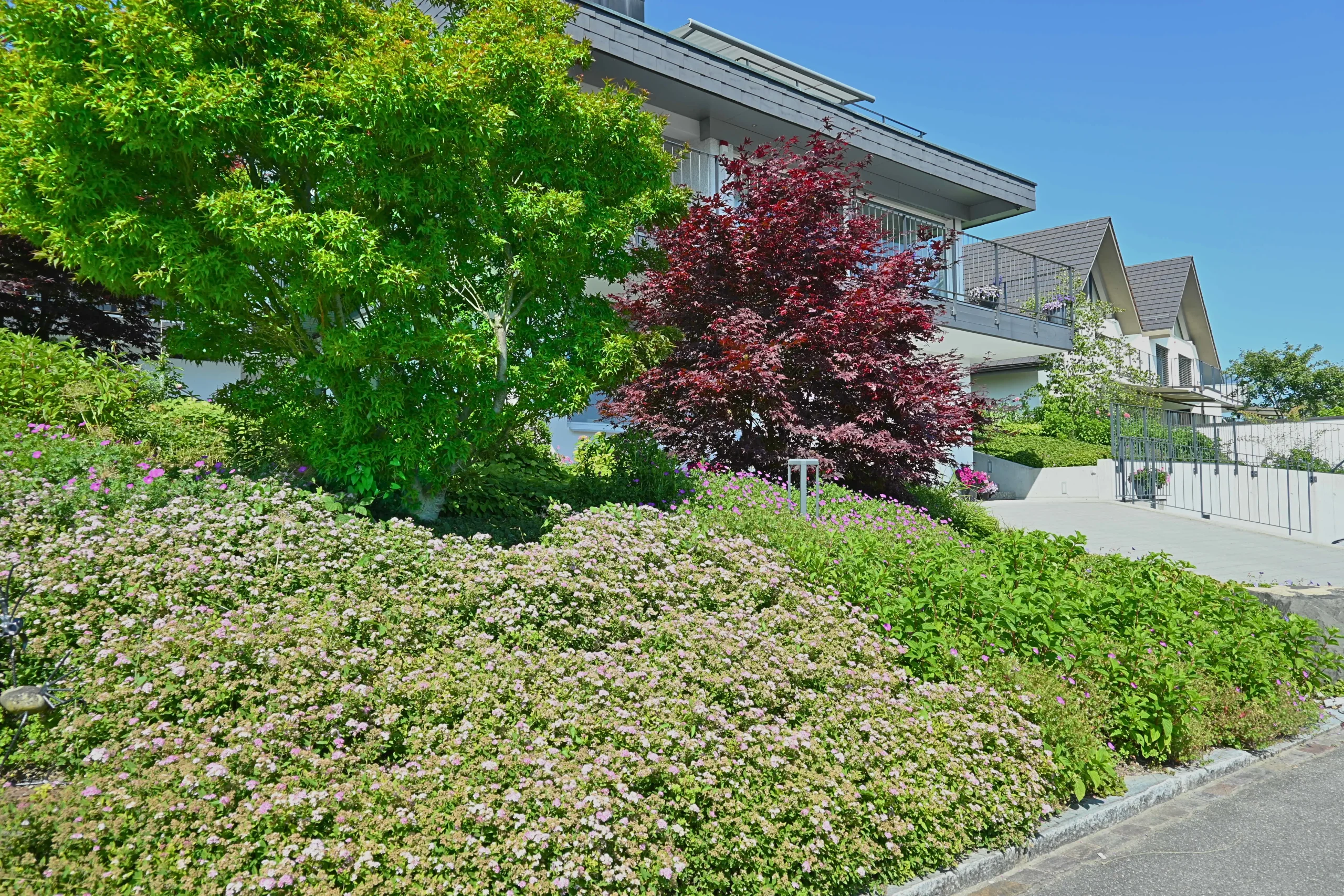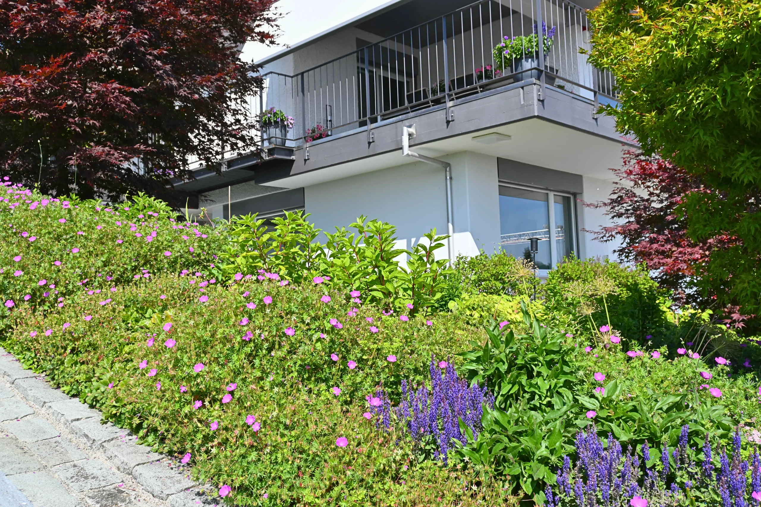 In Winkel entstand im Jahr 2020 ein Garten, der Ästhetik, Struktur und ökologische Vielfalt auf eindrucksvolle Weise vereint. Der neu angelegte Aussenraum wurde konsequent ohne Rasenfläche konzipiert – stattdessen zieht ein fein abgestimmtes Blütenspiel in Weiss- und Violetttönen die Blicke auf sich und verleiht dem Garten eine ruhige, zugleich lebendige Atmosphäre.