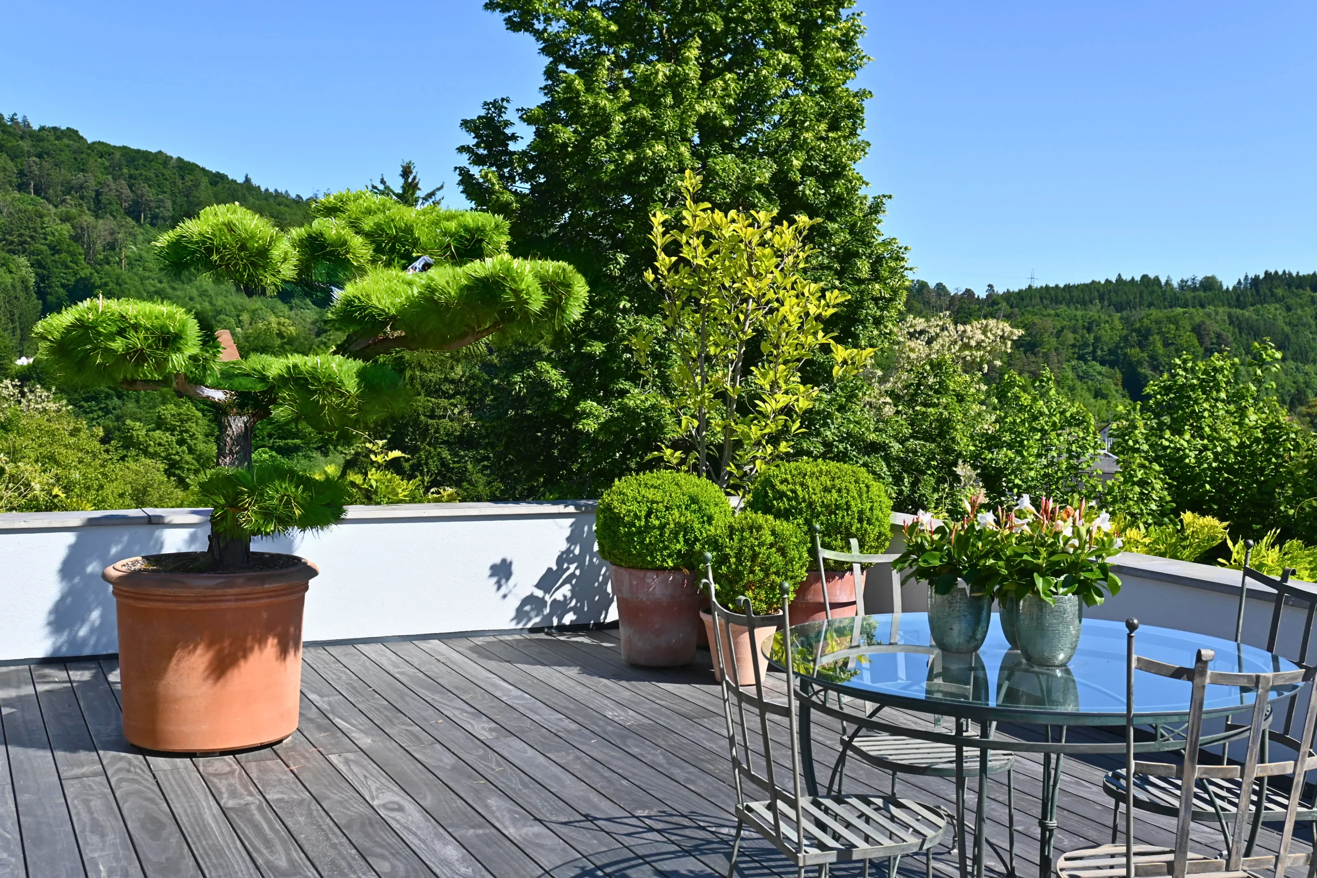 Auf dieser Seite zeigen wir verschiedenste Terrassengestaltungen: von stilvollen Bonsai-Arrangements über naturnahe Staudenbepflanzungen bis hin zu grünen Inseln, Trögen und Hochbeeten. Jede Terrasse erzählt ihre eigene Geschichte.